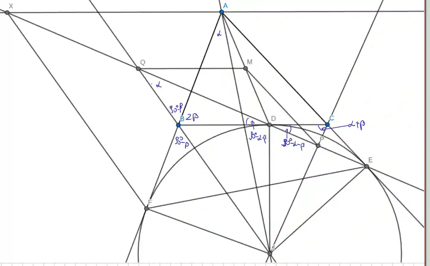 \angle FXD = \angle JQD = \alpha